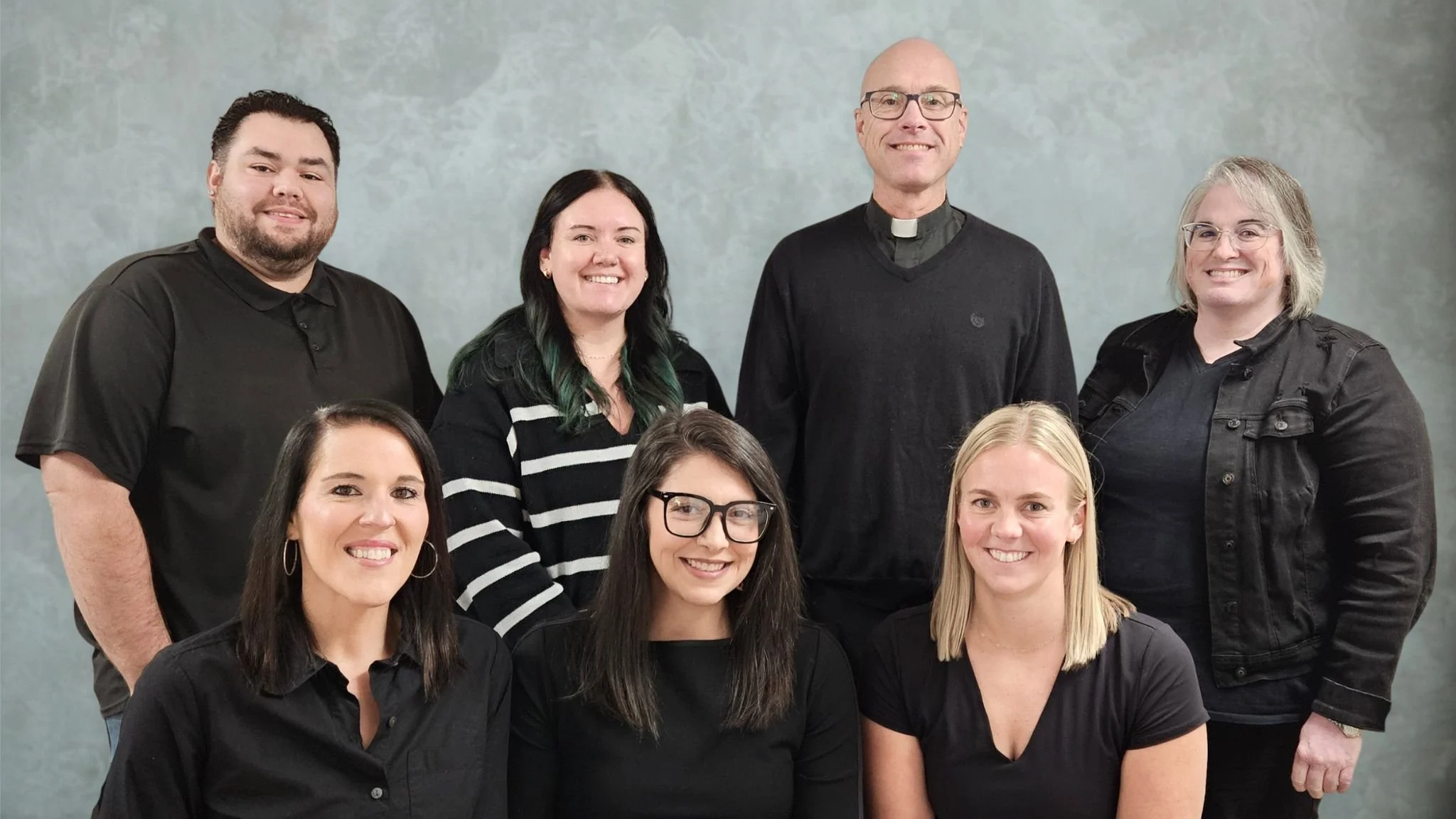 Back row: Joe Castro, Property Manager; Kim Dvorak, Kids of the Kingdom Director; Pastor Mark Astrup; Bridget Lux, Church AdministratorFront Row: Katie Buhr, Office Manager; Tasha Buhr, Co-Faith Formation Director; Megan Skalberg, Co-Faith Formation Director